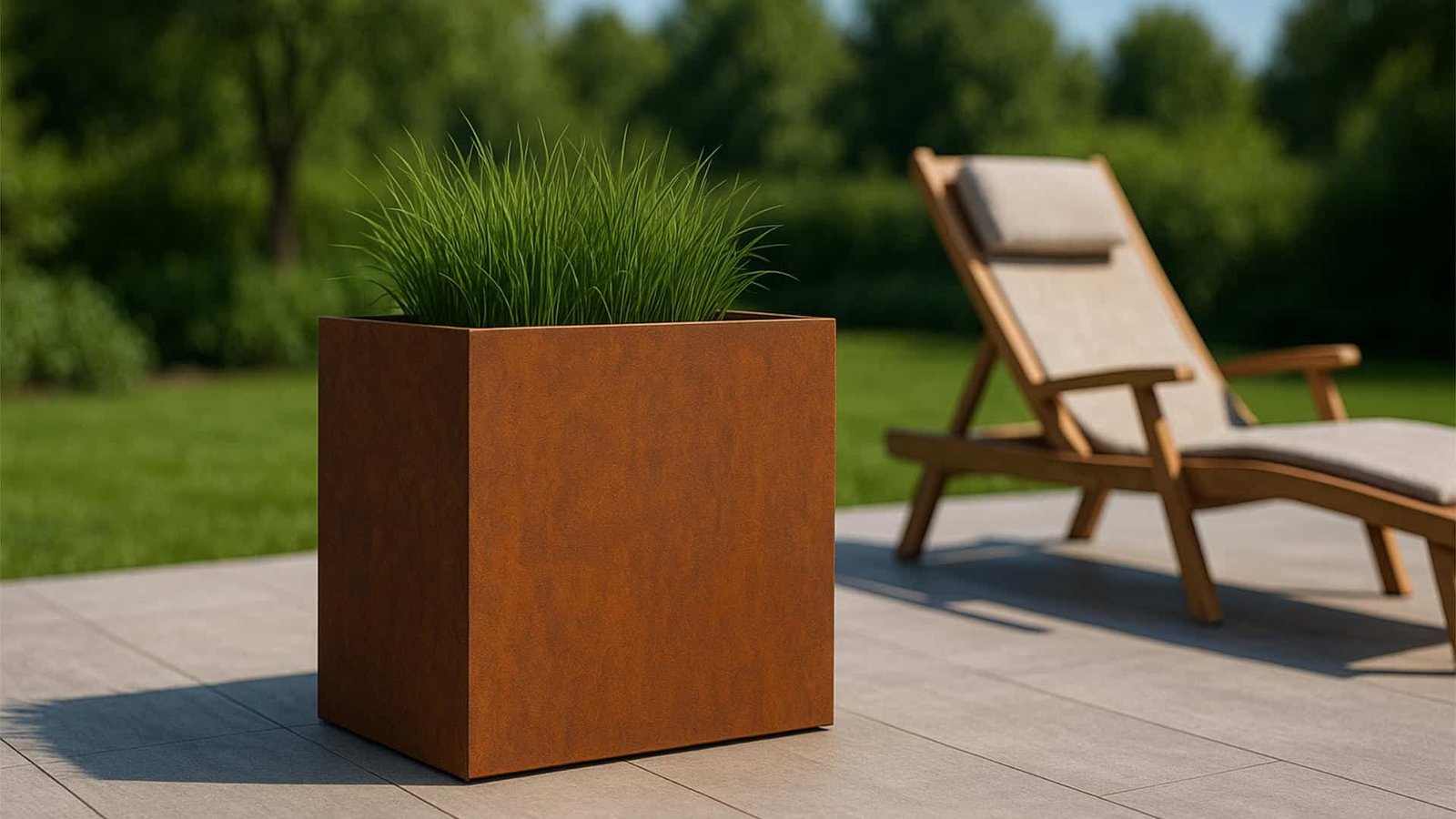Stilvoller und stabiler Blumenkübel mit Edelrost