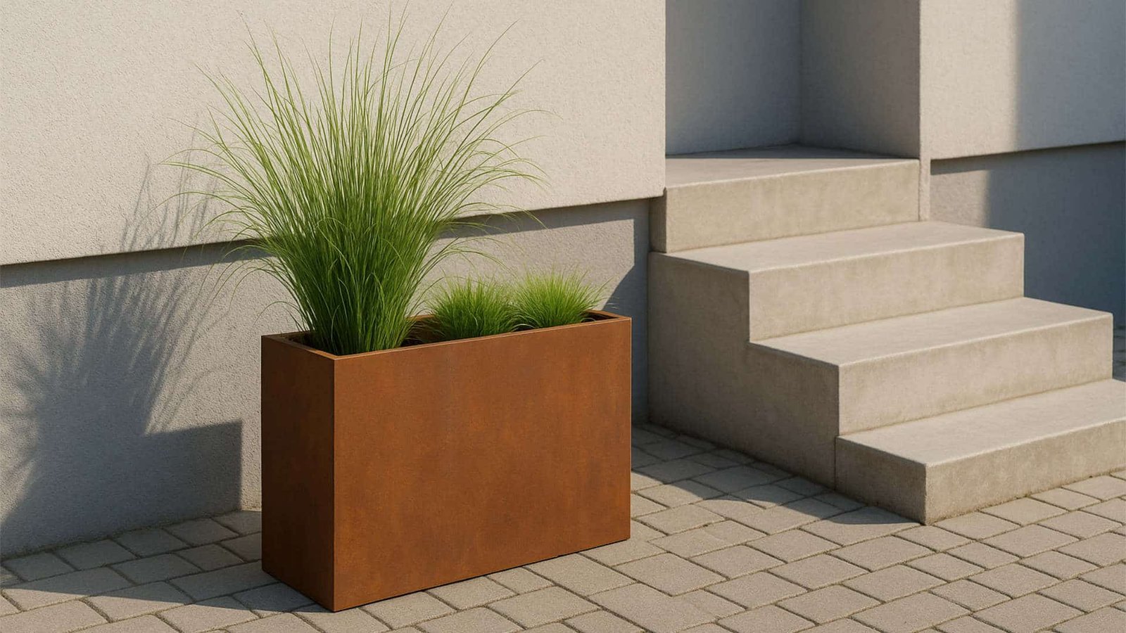 Dieser Cortenstahl Blumenkasten ist witterungsbeständig und standfest