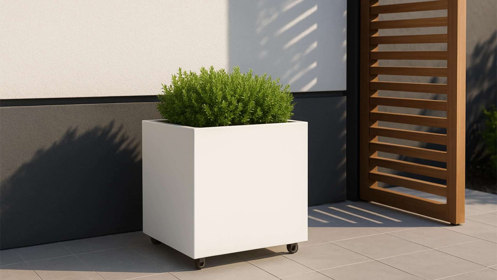 Formschöne Pflanzkübel mit rollen aus Aluminium