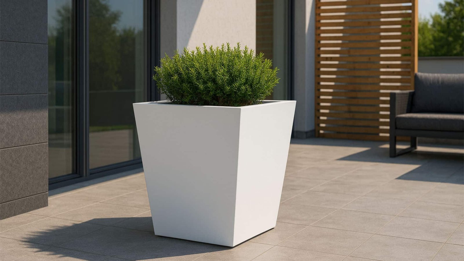 Unser Pflanzkübel „Daniele“ ist aus stabilem Aluminiumblech mit 3 Millimeter Stärke gefertigt und verfügt über eine langlebige Pulverbeschichtung. Der Pflanzkübel für die Terrasse ist in verschiedenen RAL Farben bei uns erhältlich. Als besonderen Bonus können Sie die Farbe individuell gestalten, wenn Sie mehr als 5 Exemplare dieses Blumenkübels bestellen. Sie können also bei größeren Bestellmengen die Pflanzkübel für die Terrasse optimal an Ihre gegebenen Bedingungen farblich anpassen. Diese Möglichkeit ist auch perfekt für Firmen oder öffentliche Gelände geeignet. Der Aluminium Pflanzkübel aus pulverbeschichtetem Material überzeugt weiterhin durch besondere Witterungs- und Wetterfestigkeit. Außerdem ist er selbstverständlich UV beständig und daher optimal für den Einsatz im Außenbereich geeignet.