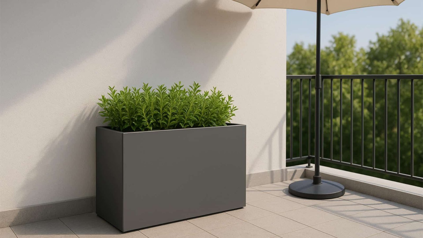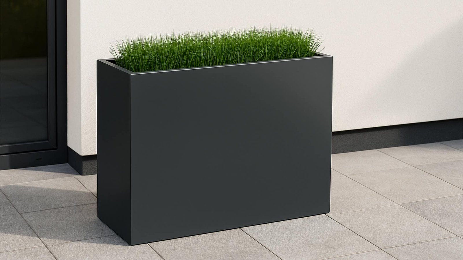 Dieser Kübel überzeugt durch seine klare Linienführung und die stabile Konstruktion. Er besteht aus 3 mm starkem Aluminiumblech, das für Robustheit sorgt. Zudem ist das Material korrosionsbeständig und widerstandsfähig gegen wechselnde Bedingungen. Dadurch eignet sich der Behälter für verschiedene Umgebungen und passt sich flexibel an. Der Pflanzkübel aus Aluminium Edoardo 19 ist rechteckig hoch gestaltet und bietet ausreichend Tiefe für unterschiedliche Pflanzenarten. Dank der Höhe von 80 cm lassen sich Gewächse stilvoll präsentieren und pflegen. Gleichzeitig erleichtert die rechteckige Form die Platzierung entlang von Wegen oder an Fassaden. Deshalb fügt sich der Pflanzkübel rechteckig hoch sowohl in moderne als auch in klassische Bereiche ein. Die Auswahl jeder RAL-Farbe erlaubt individuelle Gestaltungsmöglichkeiten. Somit entstehen spannende optische Akzente.