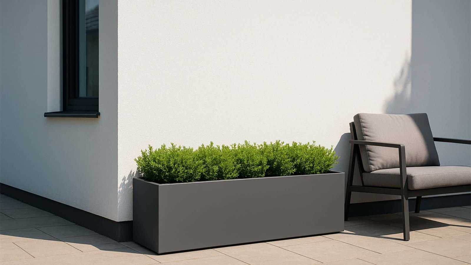 Wer Wert auf moderne Gestaltung legt, findet in diesem Pflanzgefäß die perfekte Lösung. Es vereint Beständigkeit, Funktionalität und ästhetische Wirkung auf ideale Weise. Dank der stabilen Aluminiumkonstruktion bleibt es über Jahre hinweg zuverlässig einsetzbar. Außerdem schützt die widerstandsfähige Oberfläche wirksam vor Rost. Dadurch bleibt der Kübel dauerhaft attraktiv. Besonders die rechteckige Form setzt klare Akzente und passt zu klassischen wie auch zeitgenössischen Umgebungen. Der Pflanztrog Edoardo 23 steht stabil auf kleinen Füßen, die eine Höhe von 15 mm besitzen. Durch diesen Abstand zum Boden ist die Luftzirkulation optimal gewährleistet. Außerdem verhindern die Entwässerungsöffnungen Staunässe, wenn sie regelmäßig frei gehalten werden. Mit seiner flexiblen Farbwahl nach RAL können Sie ihn exakt auf Ihr Projekt abstimmen. Deshalb ist er nicht nur praktisch, sondern auch gestalterisch besonders wertvoll.