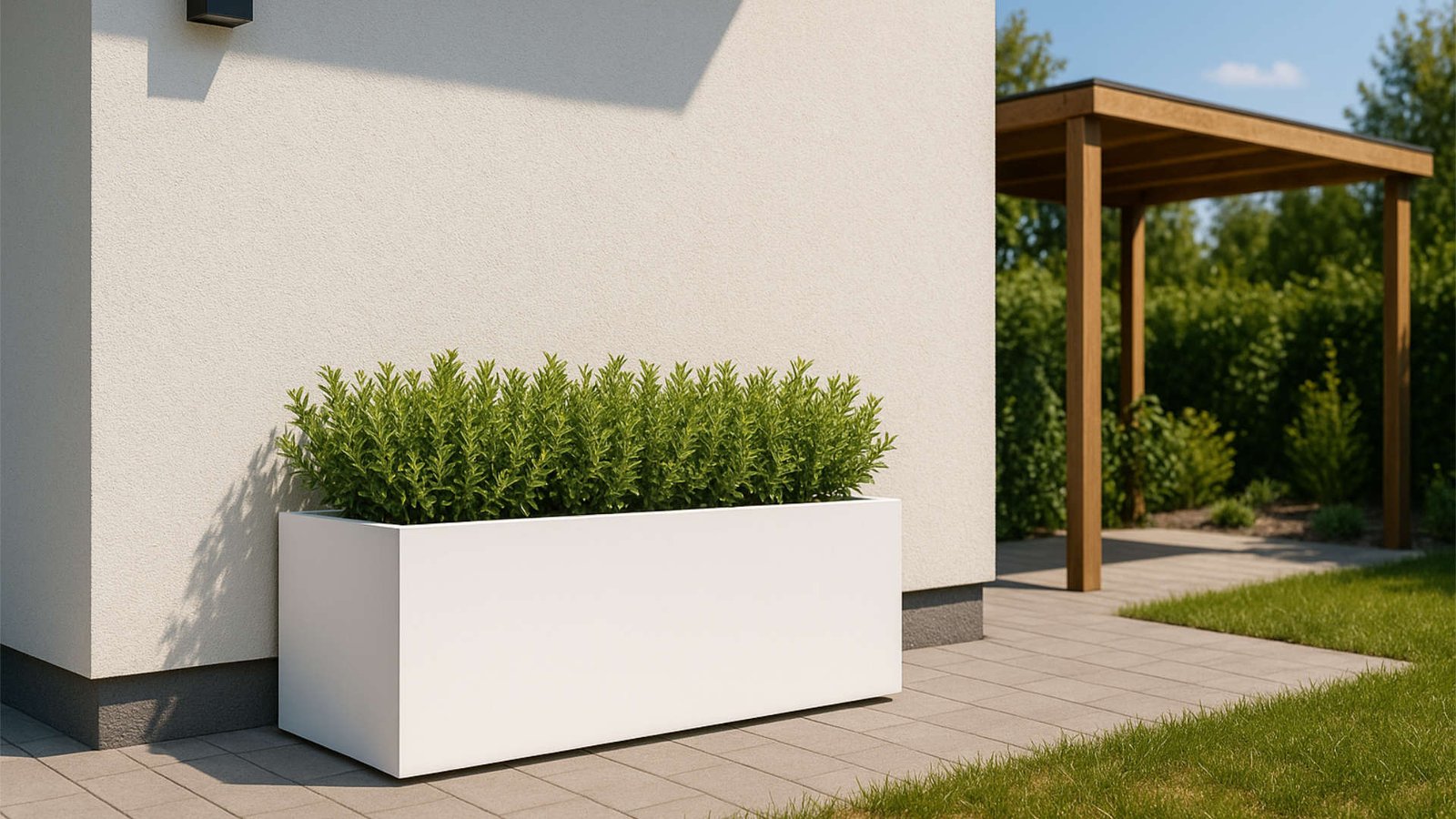 Dieser rechteckige Pflanzkübel überzeugt durch seine klaren Linien und sein modernes Erscheinungsbild. Die Maße 140 cm Länge, 40 cm Breite und 50 cm Höhe machen ihn zu einer idealen Wahl für stilvolle Bepflanzungen. Er besteht aus 3 mm starkem Aluminiumblech, wodurch er äußerst robust und formstabil bleibt. Die Pulverbeschichtung in jeder RAL-Farbe ermöglicht individuelle Gestaltungsmöglichkeiten und verleiht dem Kübel einen eleganten Charakter. Pflanzkübel aus Aluminium Edoardo 24 kombiniert Beständigkeit mit ansprechender Optik. Zudem sorgt die rechteckige Form für ein harmonisches Gesamtbild, das sich vielseitig einsetzen lässt. Pflanzkübel rechteckig wirkt sowohl im privaten Bereich als auch in repräsentativen Projekten. Die widerstandsfähige Oberfläche verhindert Rost und erleichtert die Pflege. So entsteht eine langlebige Lösung, die ästhetisch überzeugt.
