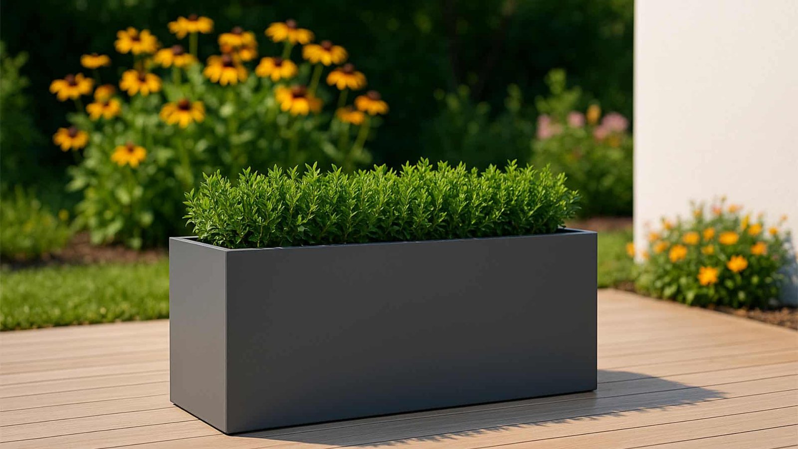 Dieser Pflanztrog besticht durch seine rechteckige Form und großzügige Abmessungen von 140 cm Länge, 50 cm Breite sowie 50 cm Höhe.Gefertigt wird er aus hochwertigem Aluminiumblech mit einer Stärke von 3 mm. Dadurch erweist er sich als äußerst widerstandsfähig gegen Korrosion und mechanische Belastungen. Der Pflanzkübel aus Aluminium Edoardo 20 ist dank seiner robusten Verarbeitung eine langfristige Lösung. Der Pflanzkübel rechteckig hoch fügt sich harmonisch in jede Umgebung ein. Er eignet sich ideal für private und gewerbliche Flächen. Zusätzlich überzeugt er mit klaren Linien, die eine moderne Gestaltung ermöglichen. Aufgrund der soliden Eigenschaften lässt sich der Kübel sowohl im Außen- als auch Innenbereich verwenden. Somit bietet er vielfältige Möglichkeiten. Dank seiner Fertigung in jeder RAL-Farbe passt er sich jedem Stil mühelos an.