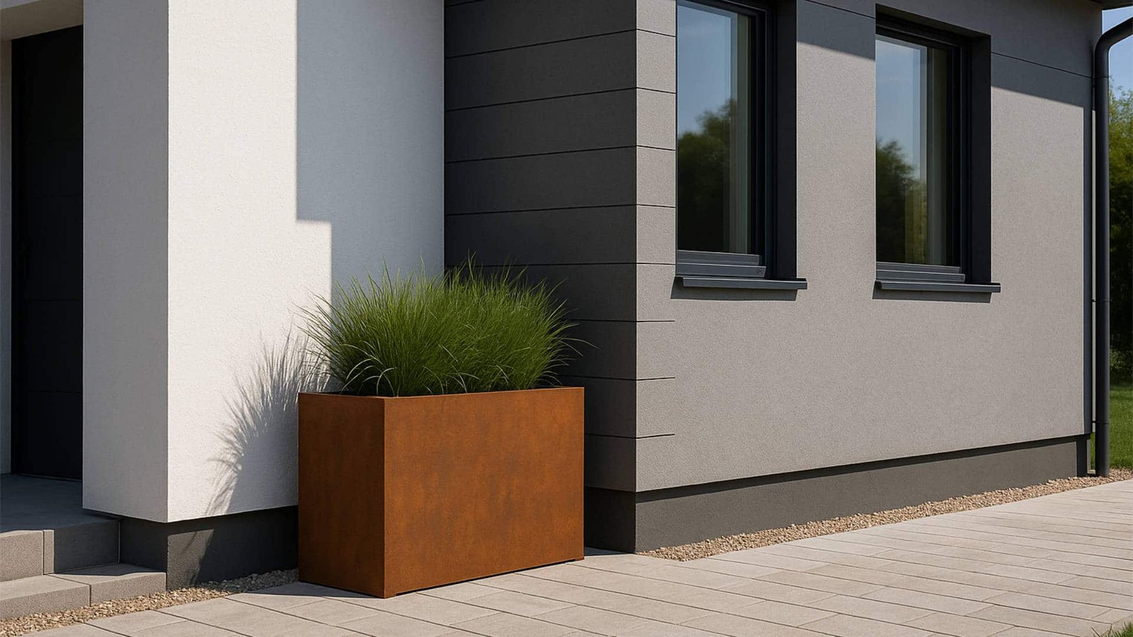 Der Pflanzkübel aus Cortenstahl Cubi 29 Rechteckig 120 × 40 × H 80 cm verbindet skulpturale Klarheit mit funktionaler Eleganz. Dank seiner markanten Linienführung ergänzt er moderne Gärten ebenso wie architektonisch anspruchsvolle Terrassen. Durch die Verwendung von 2 mm starkem Cortenstahl entsteht eine Form, die bewusst Akzente setzt. Seine schlanke Silhouette unterstreicht die Wirkung hoher Pflanzen und formaler Gehölze. Gleichzeitig wirkt das rostfarbene Erscheinungsbild warm und geerdet. Besonders im Eingangsbereich entfaltet der Kübel seine repräsentative Wirkung. Trotz des Materials bleibt das Design zurückhaltend. Es betont die Schönheit der Bepflanzung, ohne sich in den Vordergrund zu drängen. So entsteht eine harmonische Einheit zwischen Natur und Gestaltung.