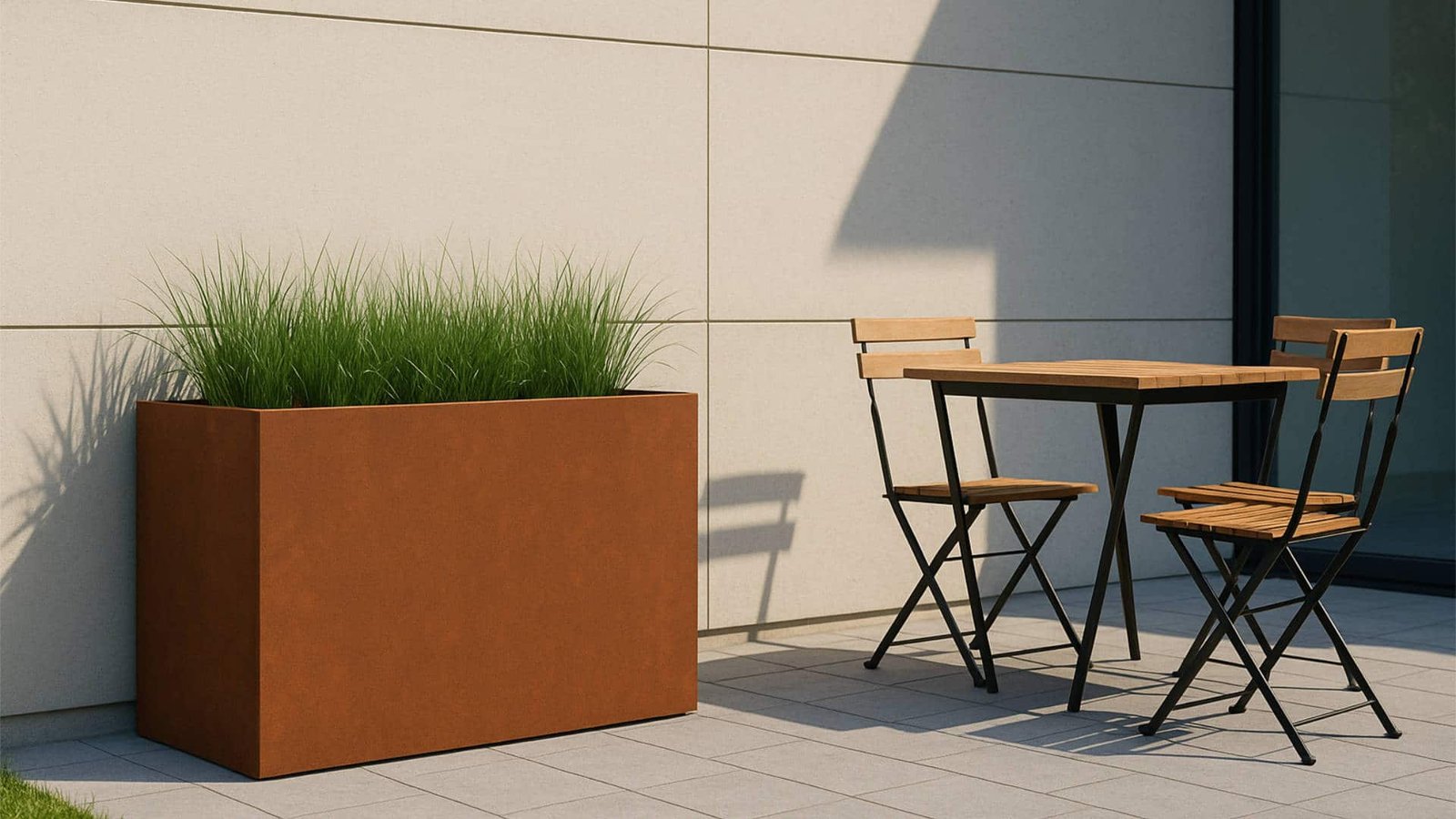 Setzen Sie ein stilvolles Zeichen mit einem Pflanzkübel Cortenstahl – langlebig, ausdrucksstark und formvollendet.