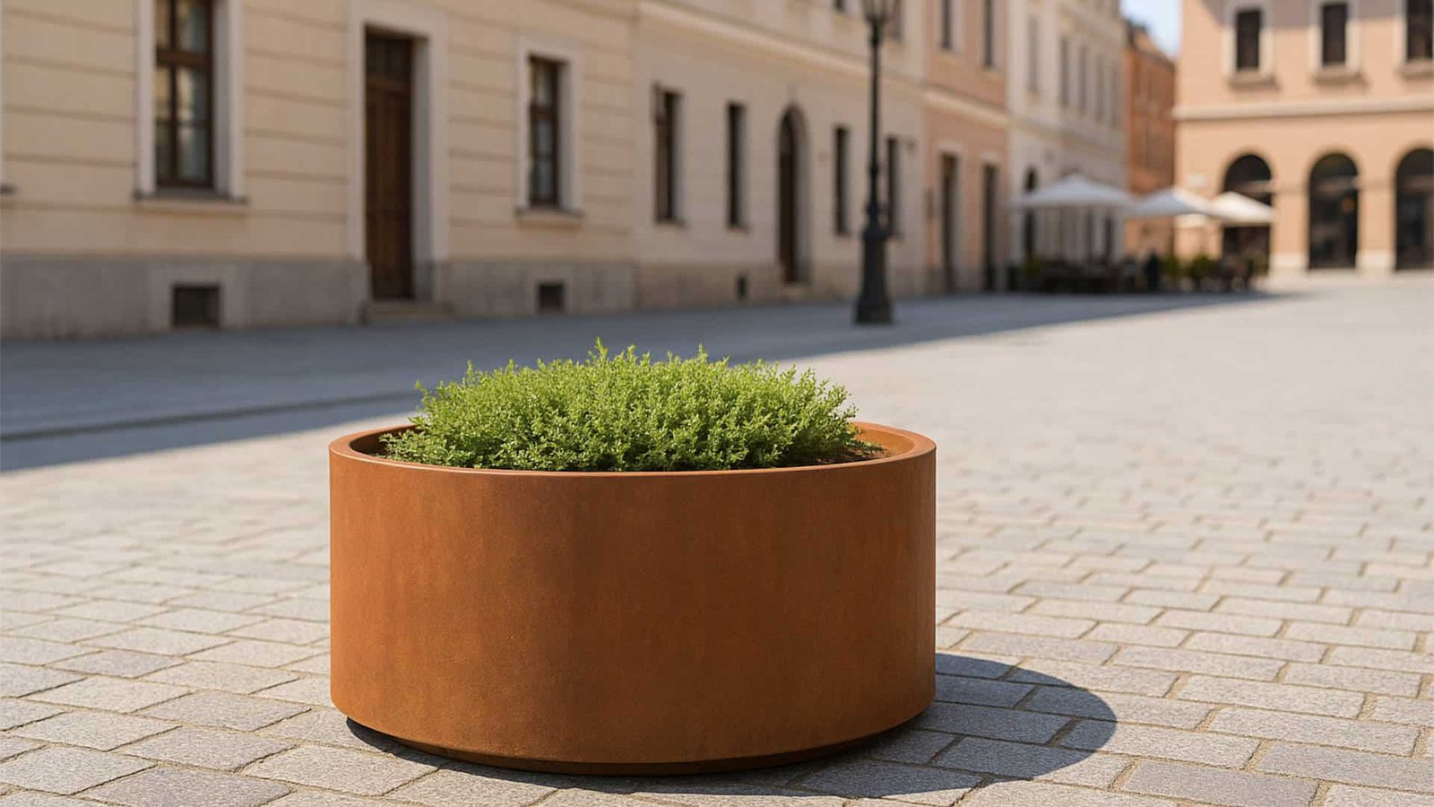 Der verwendete Cortenstahl bietet nicht nur optische, sondern auch funktionale Vorteile. Die entstehende Patina schützt die Oberfläche zuverlässig und macht jede zusätzliche Behandlung überflüssig. Der Pflanzkübel Vaso 36 bleibt über viele Jahre hinweg robust und ansprechend. Auch bei starker Beanspruchung behält er seine Form und Wirkung. Wer langlebige Qualität und zeitloses Design sucht, trifft hier eine ausgezeichnete Wahl. Der Kübel lässt sich mit anderen Elementen aus Cortenstahl wunderbar kombinieren. Er bringt Ruhe, Natürlichkeit und Struktur in Garten-, Terrassen- oder Innenraumgestaltungen. Durch seine Proportionen und Materialität wirkt er gleichzeitig dezent und präsent. So verbindet der VASO 36 Formschönheit mit funktionalem Nutzen auf höchstem Niveau.