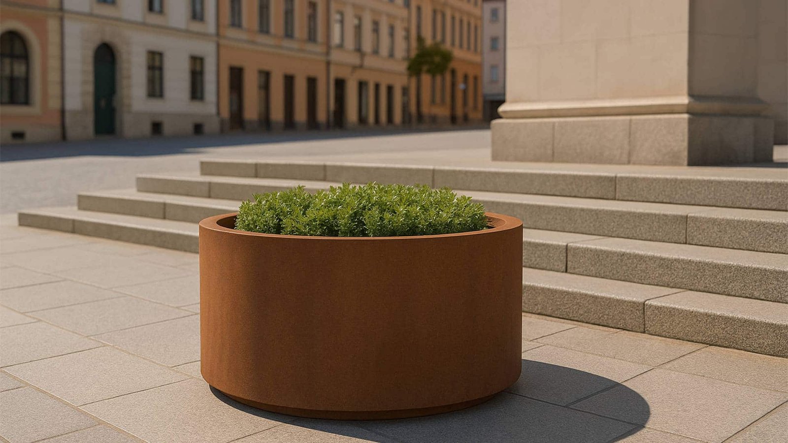 Der VASO 35 eignet sich ideal für den Einsatz im Garten, auf der Terrasse oder im Eingangsbereich. Dank seines Volumens lassen sich auch üppige Pflanzungen mit Gräsern, Lavendel oder kleinen Sträuchern realisieren. Als Cortenstahl Pflanzkübel schafft er klare Linien und visuelle Ordnung im Raum. Besonders in modernen Gartenkonzepten ergänzt er Naturstein, Holz oder Betonflächen auf harmonische Weise. Auch in Innenhöfen oder Wintergärten überzeugt der Kübel durch seine starke Ausstrahlung. Der Cortenstahl Blumenkübel lässt sich sowohl als Einzelstück als auch in Gruppen arrangieren. Seine runde Form bringt Ruhe und Symmetrie in jede Gestaltung. Zudem eignet er sich gut zur Begrenzung von Bereichen oder zur Gestaltung von Übergängen. Die Kombination aus Farbe, Form und Material sorgt stets für einen stilvollen Gesamteindruck.