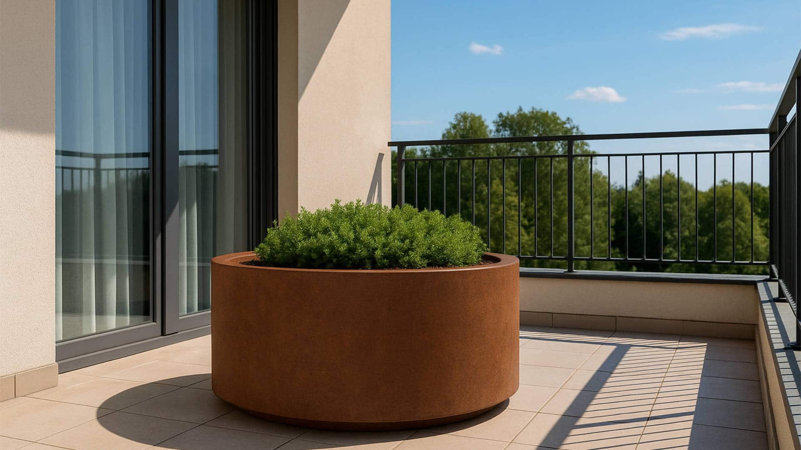 Mit dem Pflanzkübel aus Cortenstahl Alberto 1 setzen Sie ein edles Statement im Außenbereich. Der Pflanzkübel 100 cm Durchmesser rund eignet sich perfekt für repräsentative Eingangsbereiche oder großzügige Gärten. Durch seine Patina wirkt er besonders warm und einladend. Das Material ist witterungsbeständig und altert auf natürliche Weise. Dank der stabilen Konstruktion ist er auch für öffentliche Bereiche geeignet. Kleine Füße und Entwässerungslöcher sorgen für einen optimalen Wasserabfluss. Deshalb ist Staunässe ausgeschlossen. Die runde Form passt harmonisch zu weichen Gartengestaltungen und kontrastiert elegant mit klaren Linien moderner Architektur. Cortenstahl entwickelt im Freien eine individuelle Farbstruktur, die mit den Jahreszeiten wechselt. So entsteht ein einzigartiger Charakter, der jeden Außenraum aufwertet. Dieser Kübel verbindet langlebige Qualität mit natürlicher Ausstrahlung.