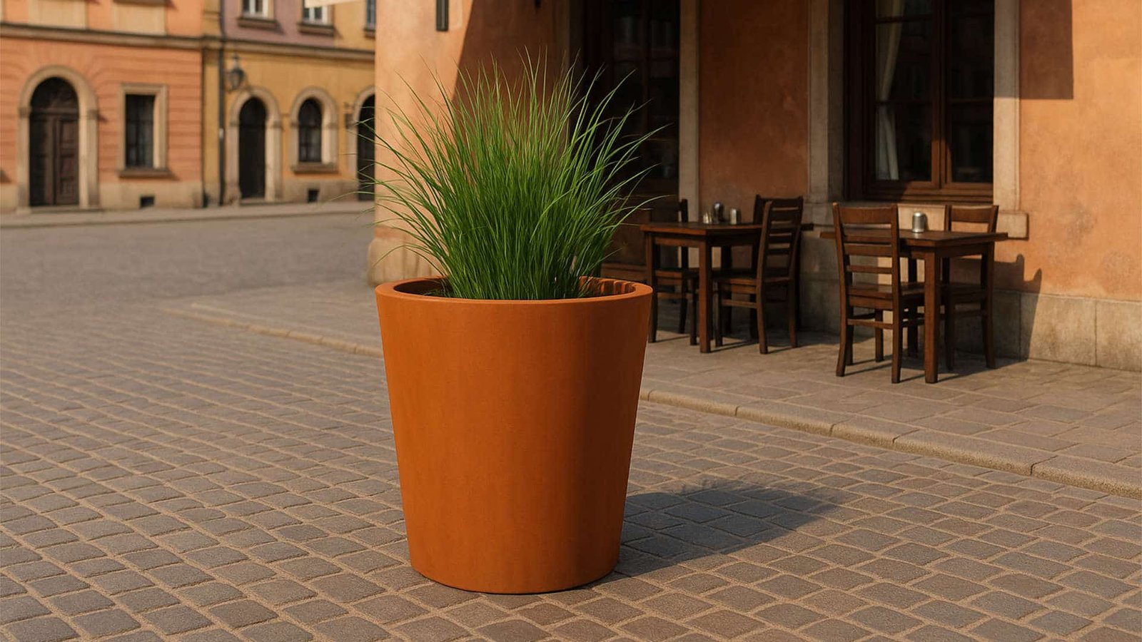 Der Cortenstahl Pflanztrog Vaso 15 eignet sich perfekt für großzügige Außenflächen, Eingangsbereiche oder repräsentative Terrassen. Durch seine imposante Höhe von 100 cm schafft er eindrucksvolle Blickpunkte in offenen Gärten. Besonders in Kombination mit Gräsern, Olivenbäumen oder Buchsbaumkugeln entfaltet der Kübel seine volle Wirkung. Auf Terrassen kann der Pflanzkübel als eleganter Raumteiler fungieren, der Sitzbereiche optisch voneinander abgrenzt.