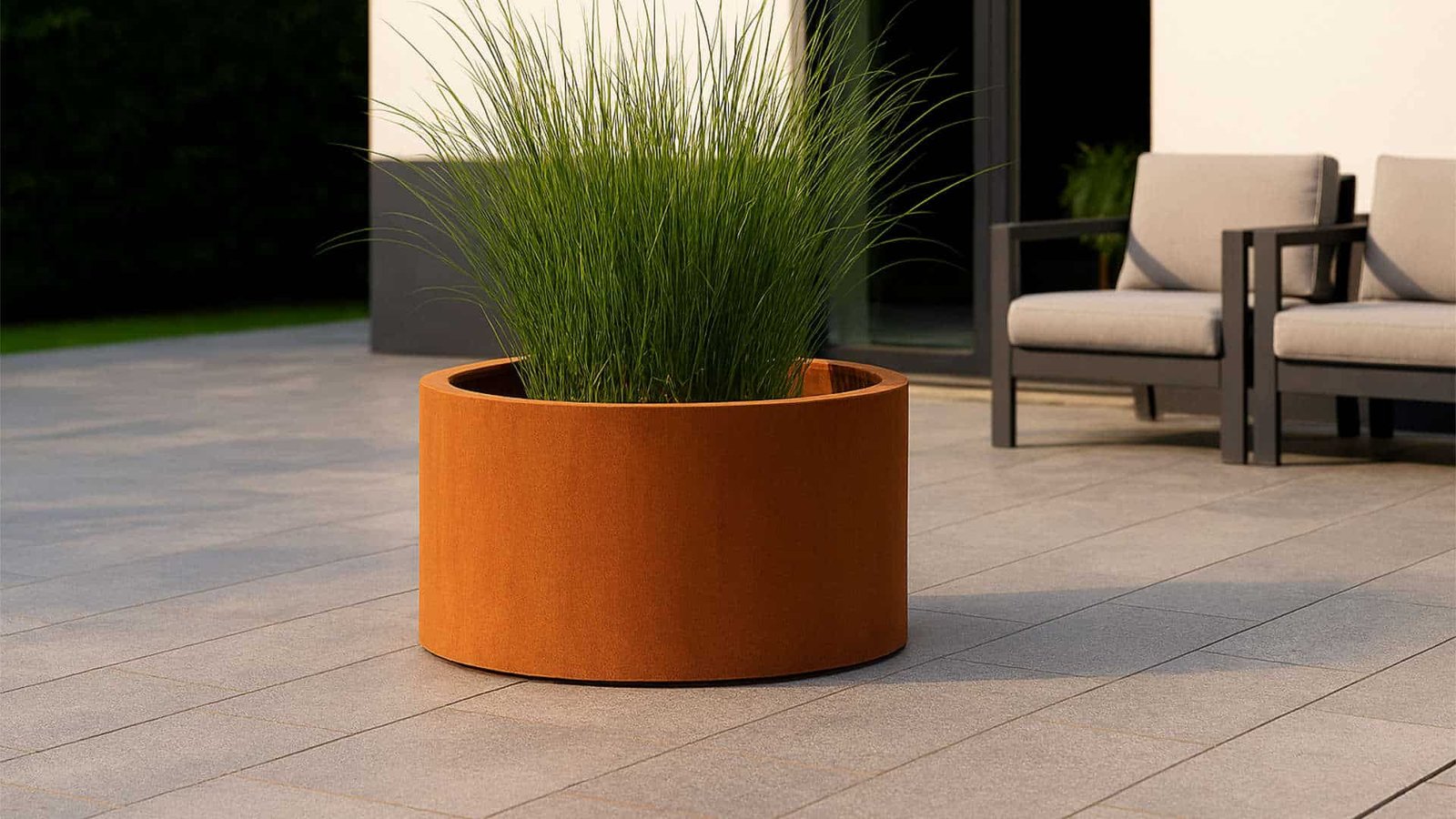 Der verwendete Cortenstahl ist ein Premium-Material mit hoher technischer und optischer Qualität. Die natürliche Rostschicht schützt das Metall zuverlässig und regeneriert sich bei Beschädigungen selbstständig. Der Pflanzkübel Vaso 32 benötigt keinerlei Pflege oder Nachbehandlung. Damit ist er ideal für alle, die Design mit praktischer Anwendung verbinden möchten. Der Kübel bleibt über Jahre hinweg stabil, formschön und optisch reizvoll. Durch seine flache Bauweise wirkt er elegant und dezent, ohne an Wirkung zu verlieren. Besonders auf großen Flächen entfaltet er seine volle Gestaltungskraft. Auch als Ergänzung zu anderen Gartenobjekten aus Cortenstahl lässt er sich hervorragend integrieren. Wer auf Qualität, Nachhaltigkeit und Ästhetik setzt, wird mit dem VASO 32 lange Freude haben.