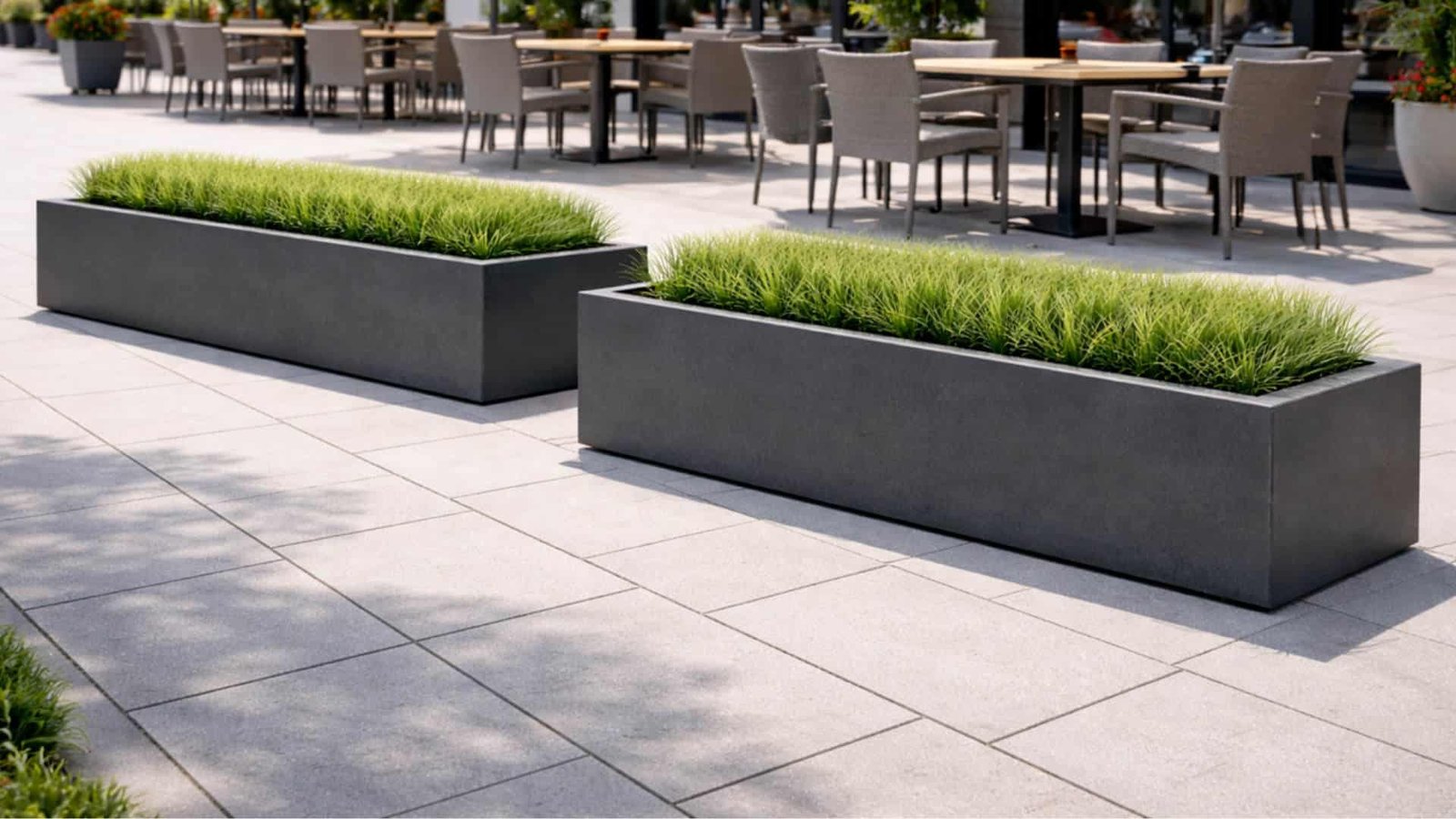 Der rechteckige Pflanzkübel Massimo in den Maßen 200 cm x 50 cm x 50 cm überzeugt durch seine beeindruckende Größe und seine solide Struktur. Er wird aus hochwertigem Polymerbeton gefertigt, dessen Wandstärke 30 mm beträgt. Dieses Material zeichnet sich durch besondere Widerstandsfähigkeit aus, da es kein Wasser aufnimmt, sondern Feuchtigkeit zuverlässig abfließen lässt. Dadurch ist der Pflanzkübel nicht nur langlebig, sondern auch ideal für den ganzjährigen Einsatz geeignet. Der Pflanzkübel für Garten Massimo wird in den Farben Weiß, Grau oder Schwarz angeboten. Die Farbgebung entsteht durch Zugabe spezieller Pigmente direkt in den Beton, was ein gleichmäßiges und dauerhaftes Erscheinungsbild gewährleistet. Zudem ist das Modell mit Ablauflöchern ausgestattet, die eine effektive Wasserableitung ermöglichen.