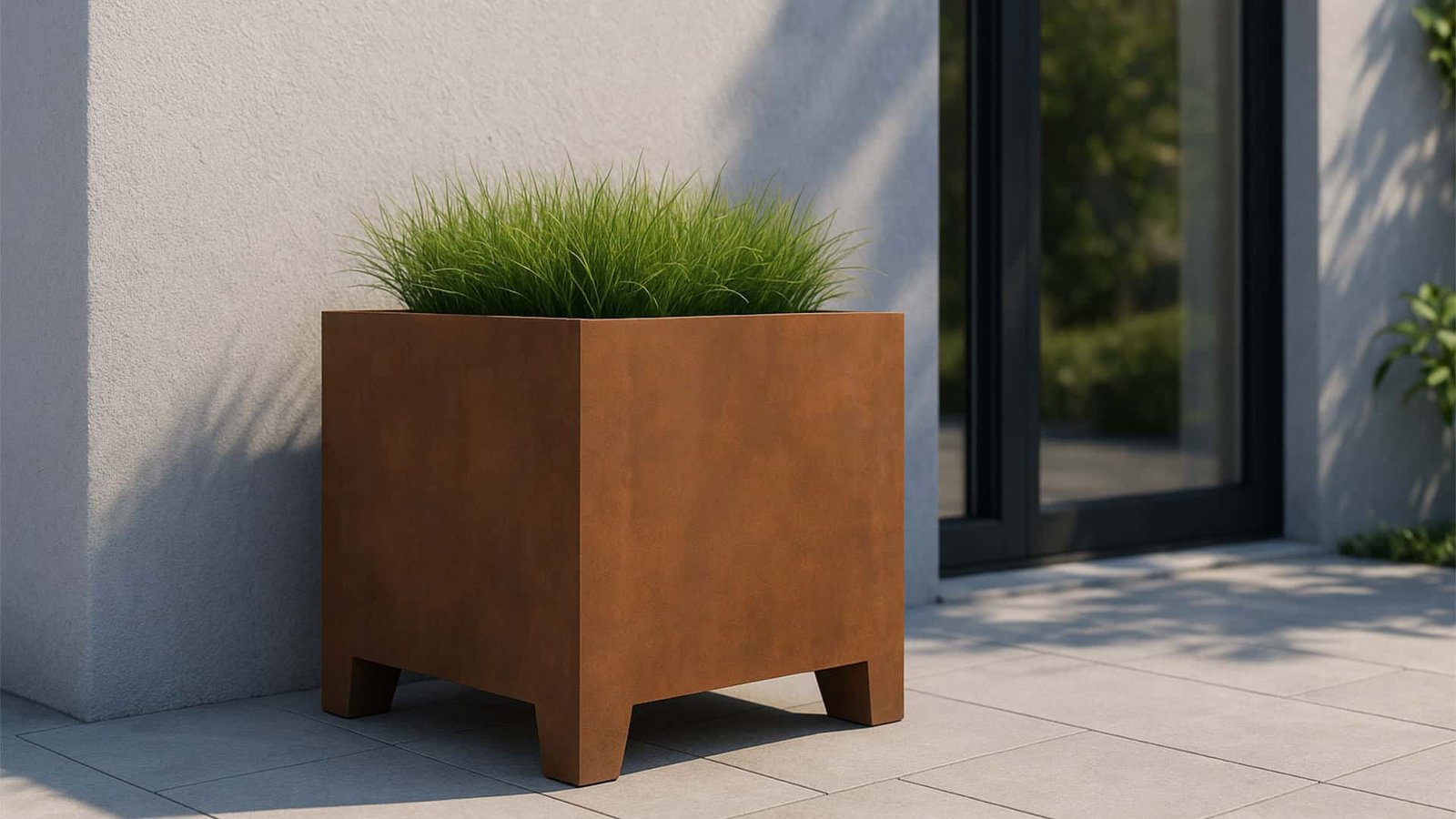 Wer sich für Gartengestaltung begeistert, erhält mit einem Pflanzkübel aus wetterfestem Cortenstahl ein praktisches und vielseitiges Dekorationselement. Wer den Rostprozess beschleunigen möchte, kann den Pflanzkübel einfach mit dem Gartenschlauch bespritzen.