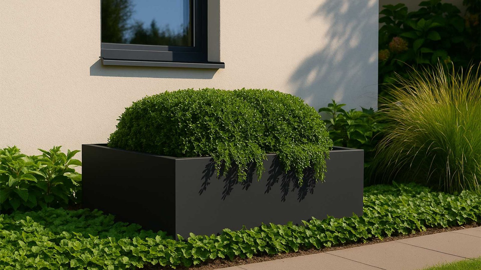 Das Aluminium garantiert eine lange Lebensdauer und eine gleichbleibend ansprechende Optik. Selbst bei intensiver Sonneneinstrahlung oder starken Temperaturschwankungen behält der Pflanzkübel seine Form und Farbe. Die offene Unterseite erleichtert den Einsatz im Beet und verhindert Staunässe. In Kombination mit Naturstein, Holz oder Glas entstehen spannende Kontraste. Dieser Pflanzkübel lädt zu kreativen Arrangements ein, sei es mit farbenfrohen Blumen, immergrünen Pflanzen oder saisonalen Dekorationen. Die rechteckige Form bietet zudem klare Strukturen, die besonders in minimalistischen Designs geschätzt werden. Dank der einfachen Reinigung bleibt der Pflanzkübel stets gepflegt und einsatzbereit. Er kann sowohl als zentrales Gestaltungselement als auch als dezente Ergänzung eingesetzt werden. Durch sein zeitloses Design passt er harmonisch in klassische und moderne Umgebungen.