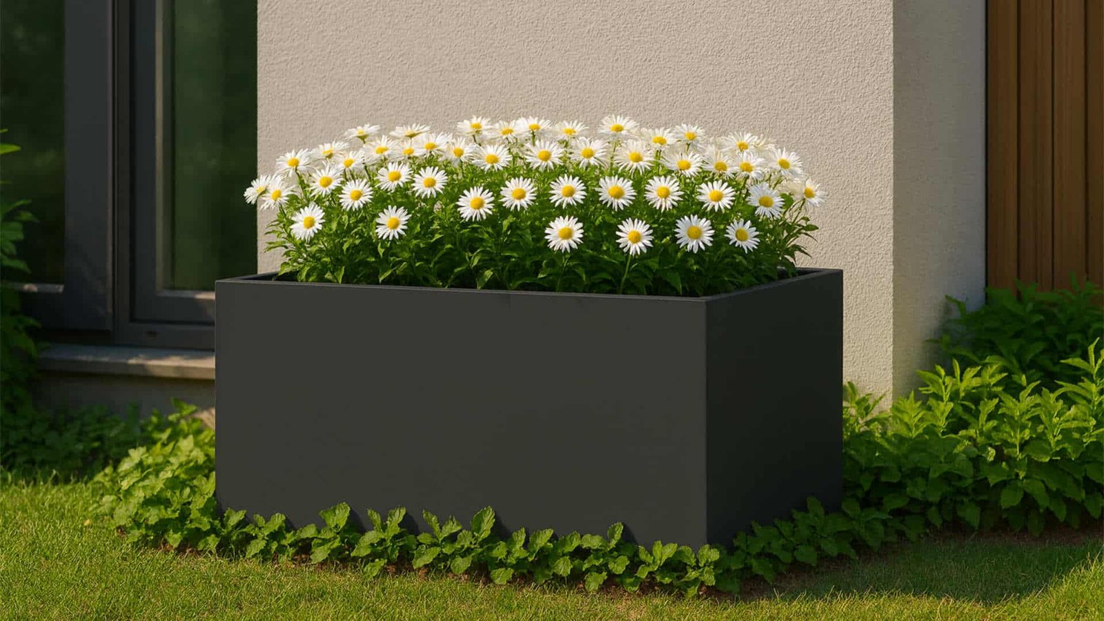 Der Pflanzkübel Aluminium ist ideal für kreative Bepflanzungen mit verschiedenen Pflanzenarten. Das hochwertige Material macht den Aluminium Pflanzkübel korrosionsbeständig und wetterfest. Die klaren Linien passen sowohl zu modernen als auch zu klassischen Architekturen. Ein Pflanzkasten Aluminium bietet Flexibilität bei der Gestaltung von Beeten oder Wegen. Die offene Unterseite erleichtert das direkte Einpflanzen in den Boden. In Kombination mit Naturstein, Holz oder Glas entstehen interessante Kontraste. Auch in Innenräumen kann der Alu Blumenkübel stilvoll Akzente setzen. Durch die rechteckige Form lassen sich Pflanzreihen harmonisch und symmetrisch gestalten. Die einfache Reinigung sichert jederzeit ein gepflegtes Erscheinungsbild.