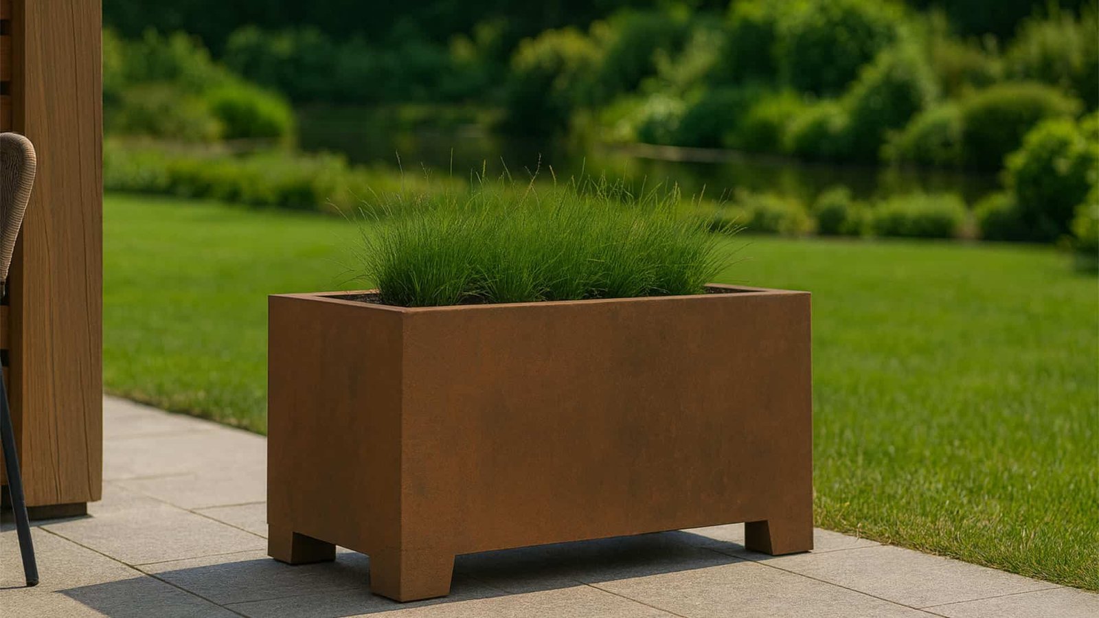 Der Pflanzkübel aus Cortenstahl 120 cm kommt mit einem LKW mit Hebebühne zu Ihnen und wird genau dort aufgestellt, wo Sie ihn wünschen. Das längliche Format dieses Kübels eignet sich wunderbar dazu, einem Raum im Freien Struktur zu verleihen. Das kann ein moderner oder auch romantischer Garten sein. Das Gefäß setzt zudem einen einzigartigen Akzent auf einer geräumigen Terrasse oder in einem Innenhof. Die schlichte rechteckige Form des Pflanztrogs betont das tolle Material. Der Rostton mit seiner warmen Farbe harmoniert mit natürlichen Materialien wie Holz, Terrakotta und Stein. Das Gefäß hebt sich aber auch wunderbar vor einer Fassade aus Glas oder Beton ab und bringt die darin befindlichen Pflanzen sehr gut zur Geltung, ohne ihnen die Schau zu stehlen.