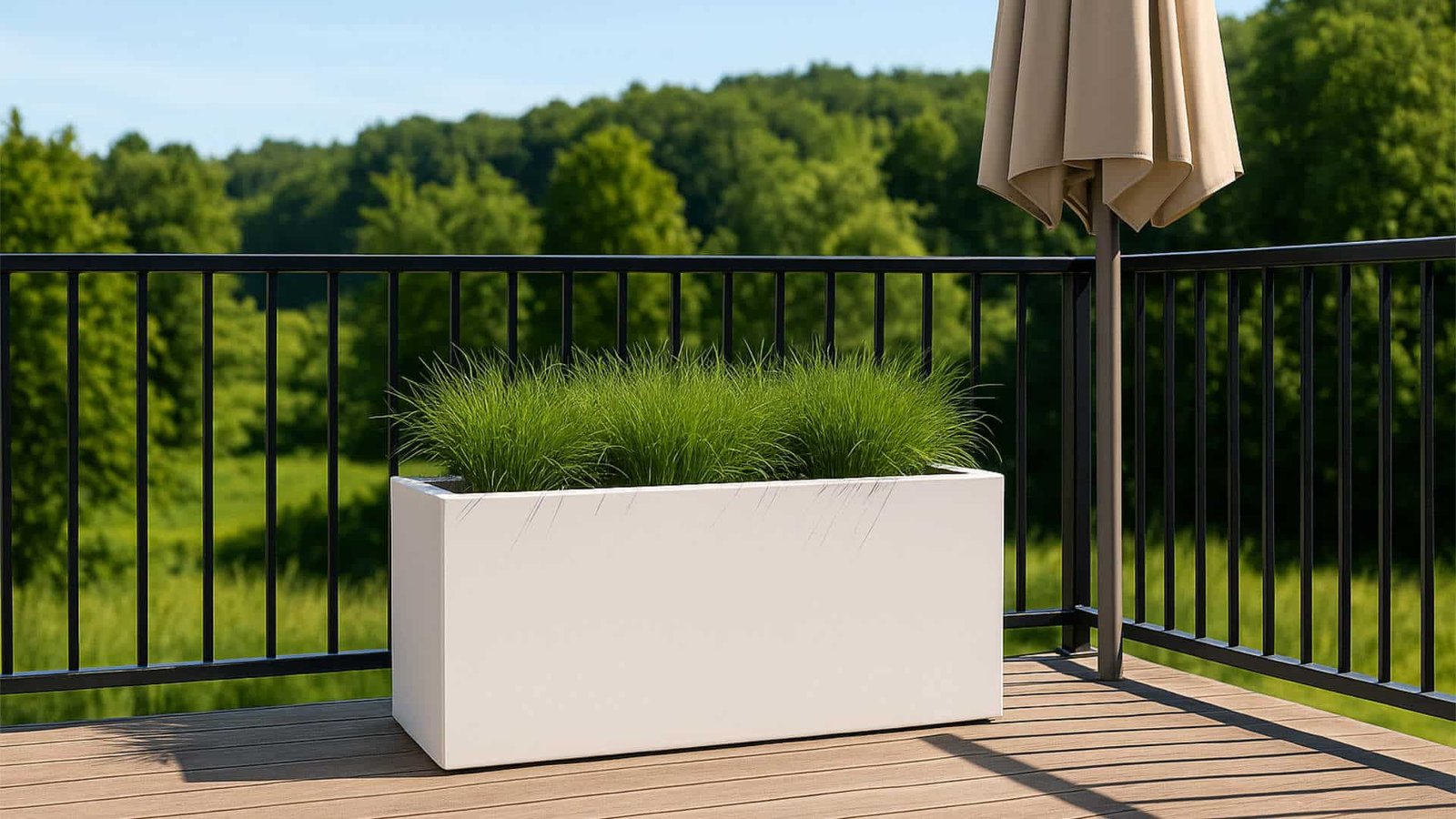 Die längliche Struktur ermöglicht flexible Platzierungen entlang von Wegen, Terrassen oder Eingangsbereichen. Ein Pflanztrog eignet sich ideal, um Bereiche sanft zu trennen oder zu verbinden. Das Gefäß wirkt dabei leicht, obwohl es deutlich Präsenz zeigt. Ein Blumentopf Weiß setzt dezente Akzente und unterstreicht moderne Architektur. Pflanzen wie Gräser, kleine Sträucher oder saisonale Dekorationen wirken besonders natürlich. Weiße Pflanzkübel Outdoor harmonieren gut mit offenen Flächen und können sowohl einzeln als auch im Ensemble genutzt werden. Innenräume profitieren ebenfalls von der klaren Linienführung, die Struktur und Ruhe vermittelt. Ein Pflanztopf setzt zudem dekorative Akzente neben Möbeln oder Fensterfronten.