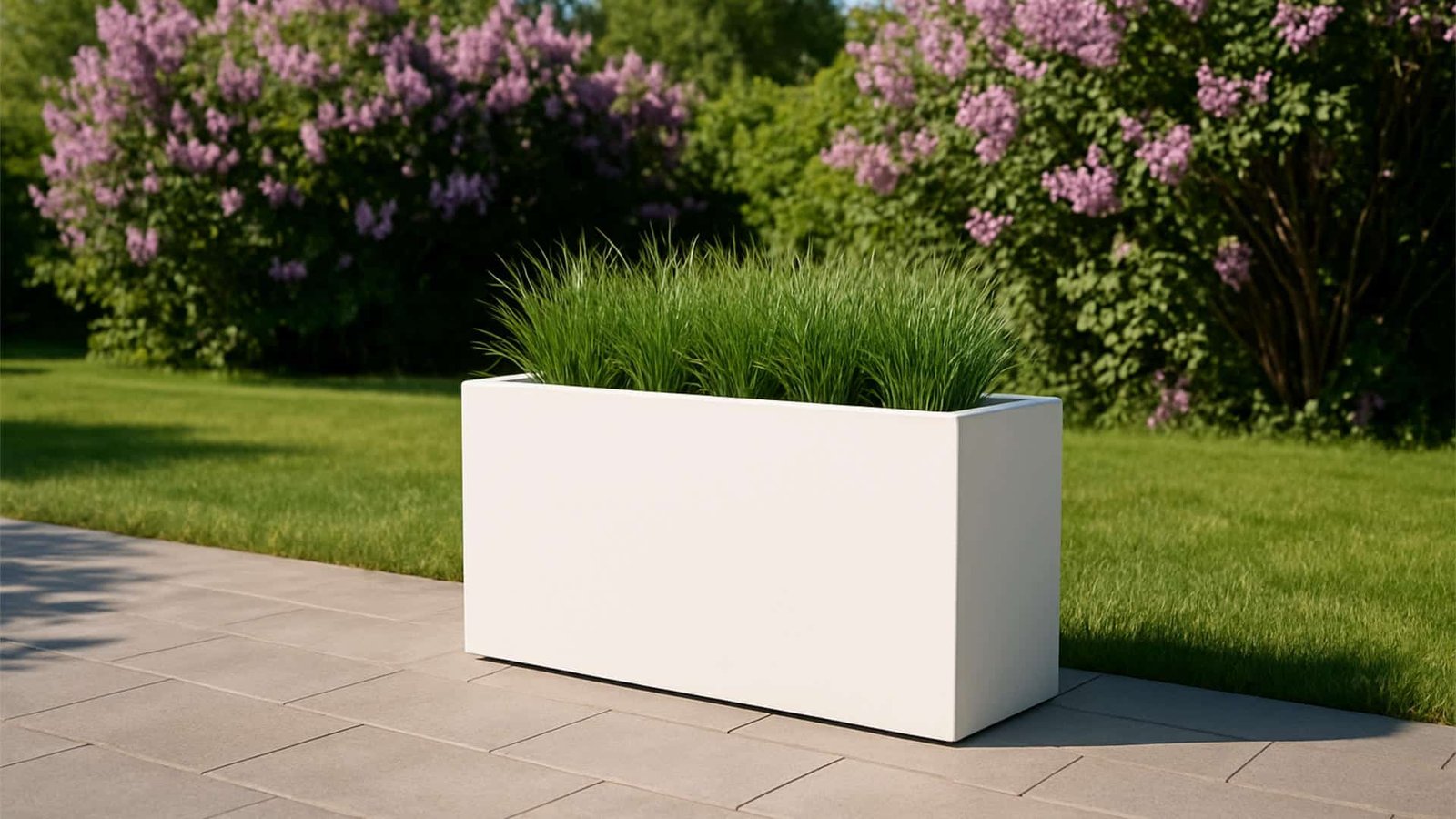 Hochwertiges Fiberglas macht den Pflanztrog belastbar, leicht und sehr langlebig. Das Material eignet sich hervorragend für Umgebungen, die Temperaturschwankungen, direkte Sonne oder Feuchtigkeit aufweisen. Ein Blumentopf Weiß wirkt durch diese Oberfläche besonders modern und gleichzeitig angenehm natürlich. Die Form eignet sich ideal für schmale Wege, Terrassenkanten und große Eingangsbereiche, in denen klare Linien besonders wichtig sind. Ein Pflanztopf bietet ausreichend Tiefe, um Ziergräser, kleine Sträucher oder immergrüne Pflanzen attraktiv zu platzieren. Die Struktur verleiht langen Flächen optische Stabilität und unterstützt die Orientierung im Raum. Weiße Pflanzkübel Outdoor können zudem stilvolle Übergänge zwischen Architektur und Garten schaffen. Auch in Innenbereichen entsteht durch diese Form eine ruhige, geordnete Gestaltung, die mit Holz, Stein oder Metall harmoniert.